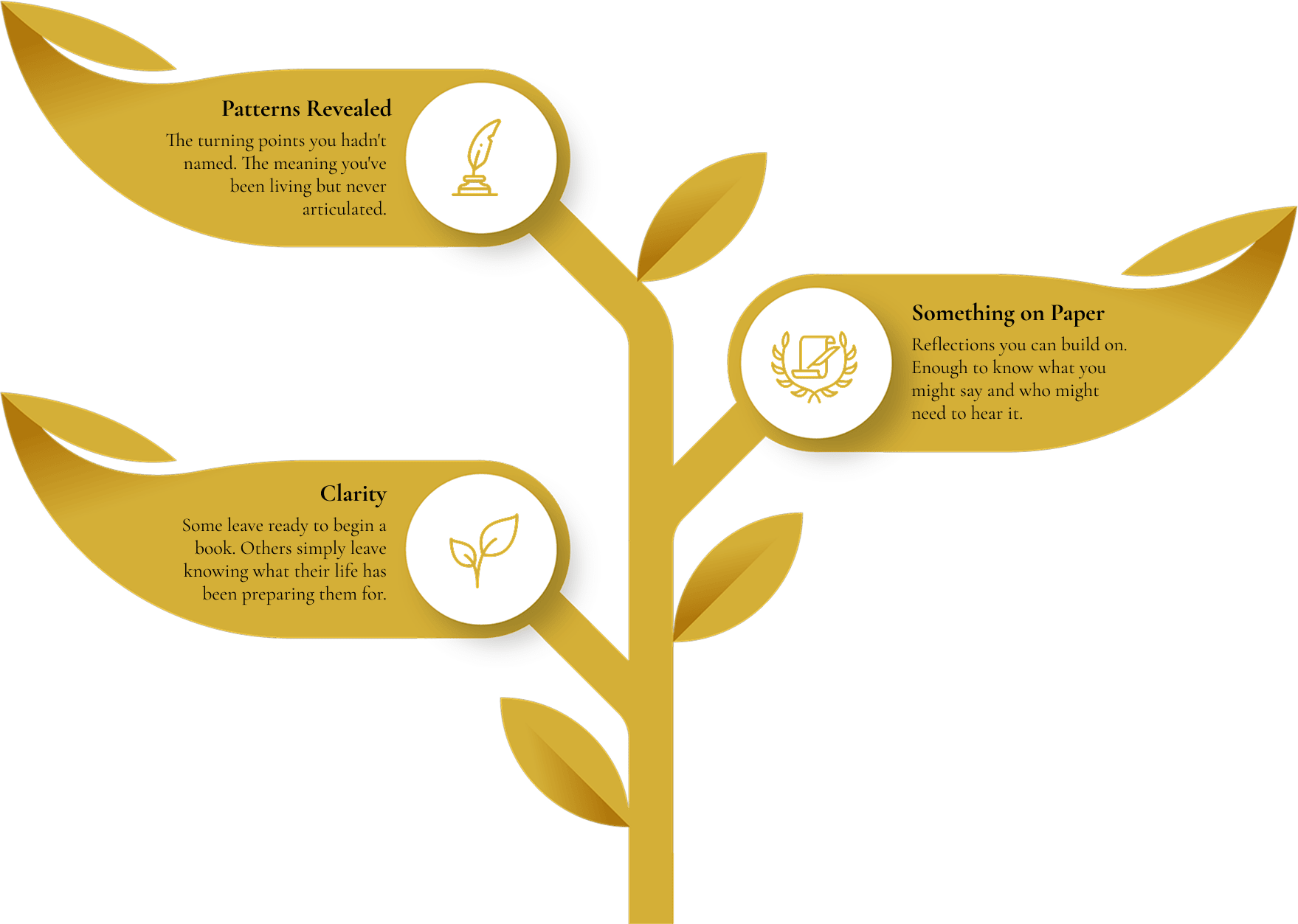Through short teachings, lived examples, and guided reflection, participants begin to notice patterns they may not have named before. Early moments that shaped identity. Turning points that clarified values. Seasons of loss, disruption, or risk that, when seen together, begin to reveal purpose rather than randomness.